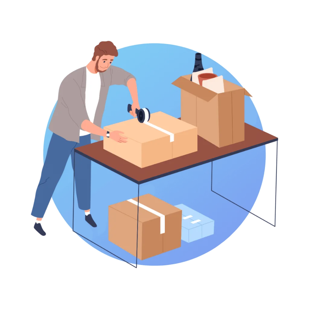 Vendemos todos los productos que necesitas para tu mudanza: cajas de cartón, bolsas industriales, plástico burbuja, cinta ancha transparente… Toca el botón para comenzar